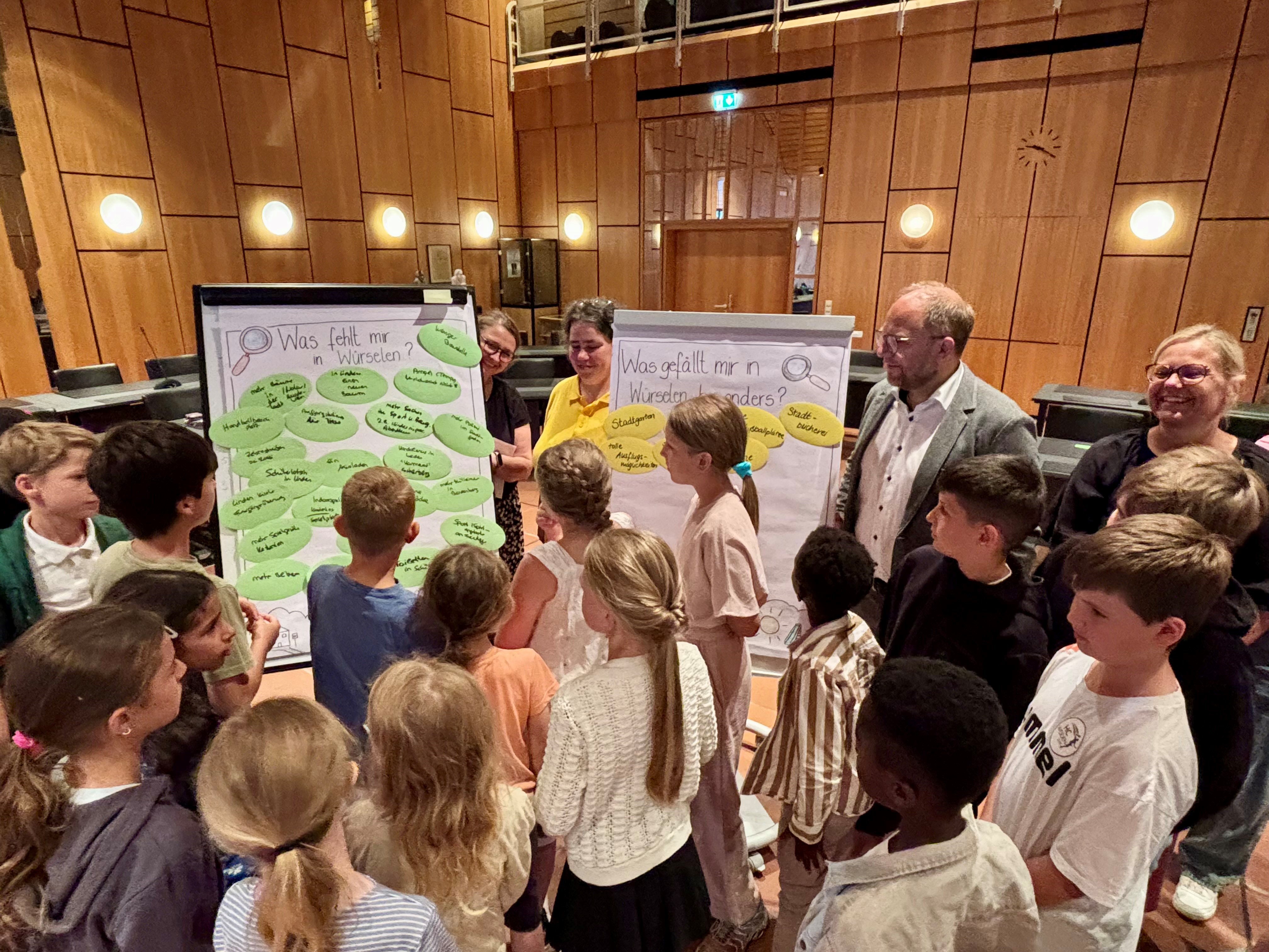Danach wurden die Themen, welche die Kinder aus den Schulparlamenten ihre Schule mitgebracht haben, gesammelt. Die Kinder haben berichtet, was ihnen in Würselen gut gefällt, durften aber auch mitteilen, was ihnen noch fehlt. Dabei haben sie Themen aus der Schule gut vorgebracht. Herr Nießen hat sich über das Lob sehr gefreut, aber auch versprochen, dass er sich alle Wünsche genau ansieht und gemeinsam mit seinem Team überlegt, was umgesetzt werden kann.